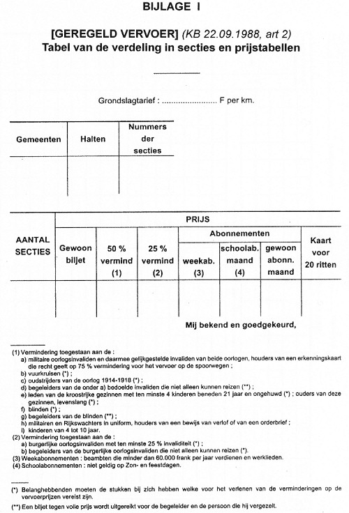 De vervoerondernemer is er toe gehouden de volgende abonnementskaarten af te leveren met 50 pct. vermindering op het gewoon tarief <KB 1988-09-22/31, art. 2, Inwerkingtreding : 1988-10-01> :