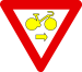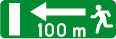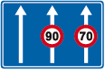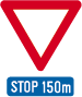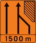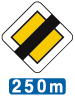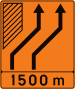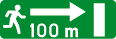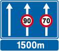 Verkeersbord dat het verkeersbord B 11 aankondigt op de bij benadering aangeduide afstand