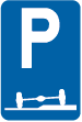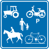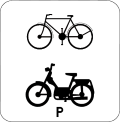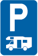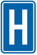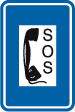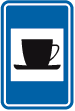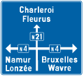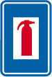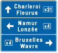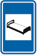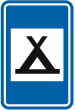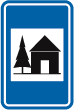 F 77. Voorbeeld van een wegwijzer die de installaties aankondigt die voorkomen op de verkeersborden F 71, F 73 en F 75.