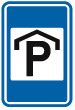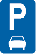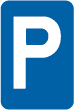 Begin van een zone met beperkte parkeertijd (blauwe zone).