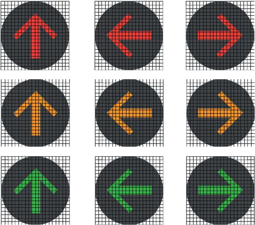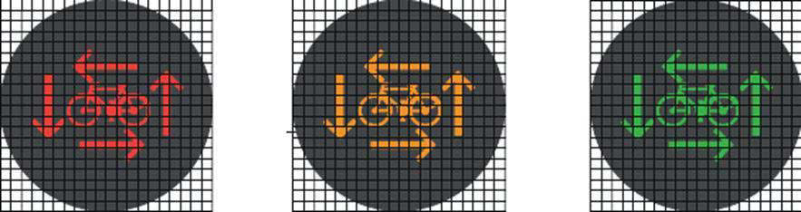 3.4.2. Driekleurige fietserslichten met pijltjes (artikel 61.1, 7°, van het koninklijk besluit van 1 december 1975 houdende algemeen reglement op de politie van het wegverkeer en van het gebruik van de openbare weg)