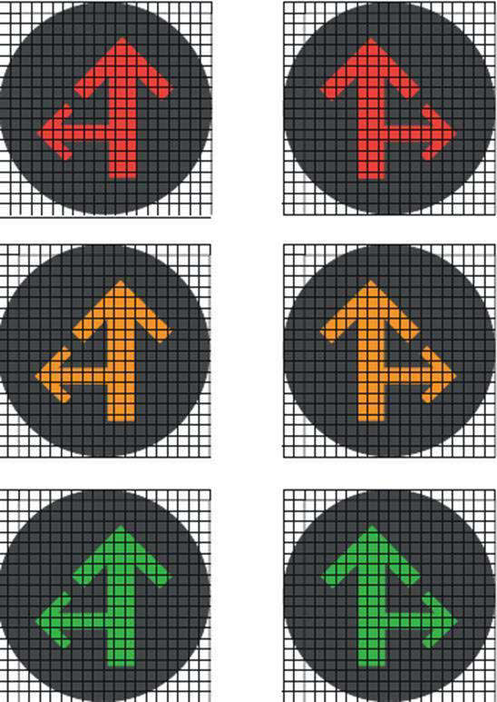 3.3. Driekleurig stelsel met pijlen (artikel 61.1.4° en 5° van het algemeen reglement op de politie van het wegverkeer)