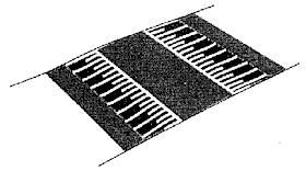 - de tussenafstand tussen twee strepen bedraagt ongeveer 0,20 m;