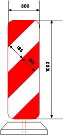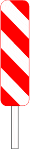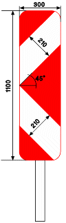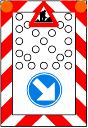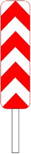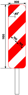 Er worden ten minste twee verkeersborden D1, waarvan de pijl onder een hoek van ongeveer 45° naar beneden gericht is, geplaatst boven de bakens, op ongeveer 50 m van elkaar.