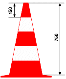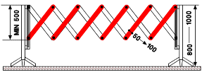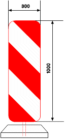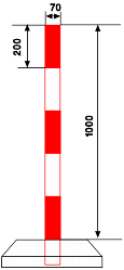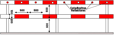 Afwisselend rode en witte strepen (afmetingen in millimeter)