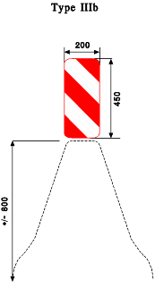 - hetzij door een fysische afscheiding van afwisselend witte en rode kleur of waarop de middelen van type III van bijlage 2 bij dit besluit zijn aangebracht.
