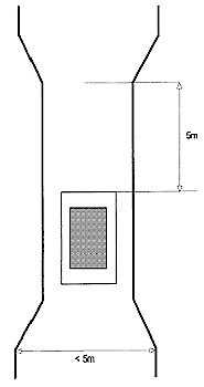 Wanneer de breedte van de rijbaan onvoldoende is, wordt voorgesteld een doorlopende witte streep aan te brengen, voorafgegaan door drie onderbroken strepen langs weerskanten van de inrichting. Omdat deze witte lijn in de praktijk te gemakkelijk overschreden kan worden (zware overtreding), is dit geen optimale oplossing.