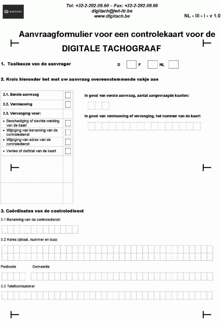 Bijlage 8. Formulieren voor de aanvraag van tachograafkaarten (controlekaart)