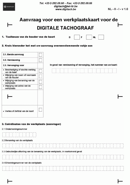 Bijlage 8. Formulieren voor de aanvraag van tachograafkaarten (werkplaatskaart)