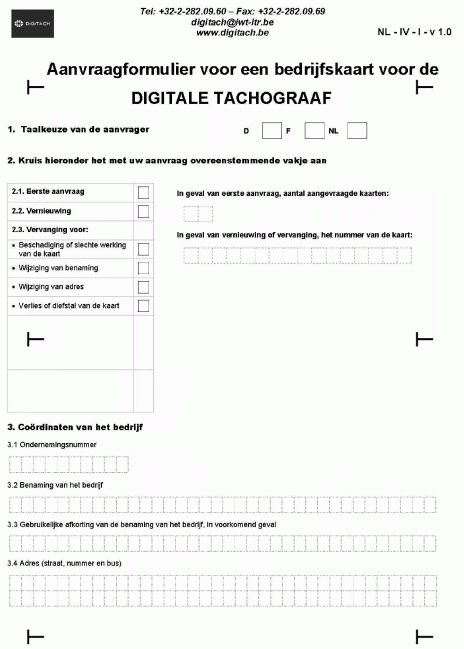Bijlage 8. Formulieren voor de aanvraag van tachograafkaarten (bedrijfskaart)