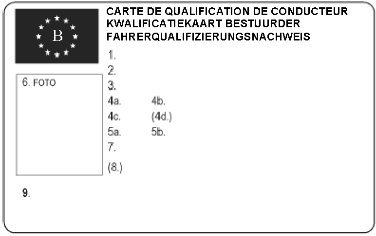 - de vermelding “carte de qualification de conducteur — kwalificatiekaart bestuurder — Fahrerqualifizierungsnachweis”, in hoofdletters;