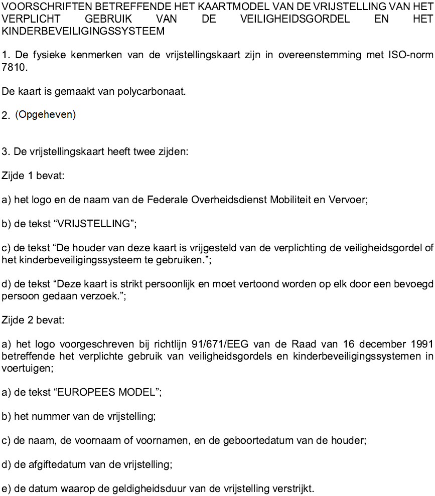 Artikel 1. Dit besluit voorziet in de gedeeltelijke omzetting van de richtlijn 91/671/EEG van de Raad van 16 december 1991 betreffende het verplichte gebruik van veiligheidsgordels en kinderbeveiligingssystemen in voertuigen.